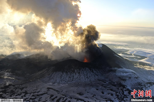 当地时间1月6日,俄罗斯堪察加半岛上的Tolbachnik火山喷发,浓烟弥漫火山灰飞溅。