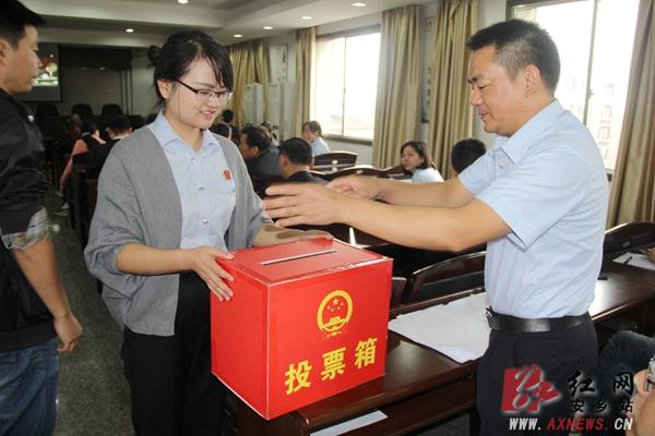 会议宣读了选举投票的注意事项和人大代表候选人的基本情况。干警们认真填写选票,为自己支持的县人大代表候选人和镇人大代表候选人投下了神圣的一票。