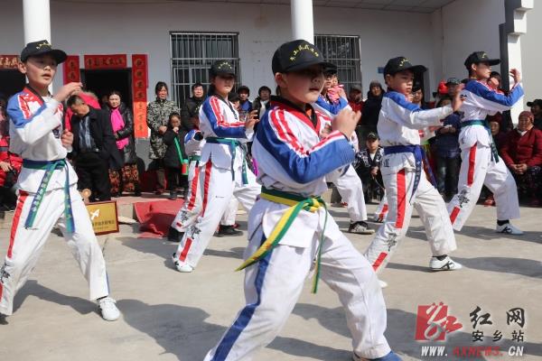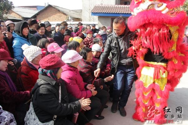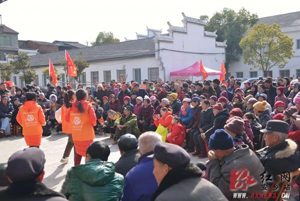 随着一阵清脆的鞭炮声响,花鼓戏连唱、萨克斯演奏、现代舞、跆拳道、舞狮表演等一个个义工们自己表演、筹备的节目,接连呈现在老人眼前,鼓掌声、欢笑声一阵接一阵。这样欢乐的气氛也吸引了周围村民,村民们三三两两的前来,将不大的敬老院操坪舞台围了里三层外三层,好不热闹。