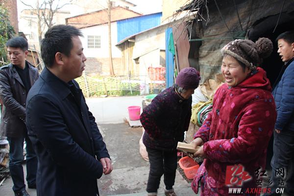 县委常委、县委宣传部部长李碧波来到困难群众袁力雄、张美英、李银安等人的家中看望。在得知袁力雄是一位植物人,只能靠注射器注射流食,家中因病致贫的情况后,李碧波鼓励袁力雄家人坚定信心,在党委政府的关心帮助下,积极面对生活;乡镇和相关部门要进一步落实医疗扶贫政策,帮助解决他家实际困难。在张美英家中详细了解其家庭生活情况时,看见房屋周围放着用于取暖的柴火、木头段后,李碧波嘱咐张美英在烤火后要注意防火,做到“人走火灭”,注重用火安全。