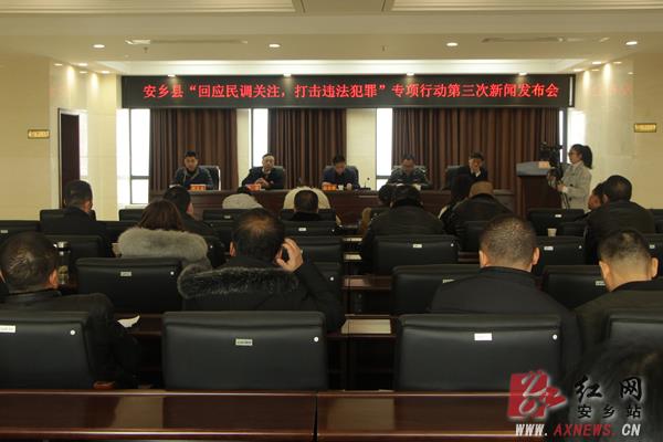 红网时刻2月7日讯(分站记者 廖孙赐)为进一步推进专项行动深入开展,确保“春节”社会大局安全稳定,2月7日下午,安乡县召开“回应民调关注,打击违法犯罪”专项行动第三次新闻发布会。