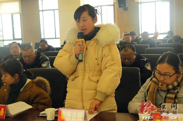 发布会上,安乡手机报、安乡电视台、常德日报安乡站等媒体记者围绕“回应民调关注,打击违法犯罪”这一主题,提出“公安机关如何贯彻落实社会治安综合治理新要求、法院在治安环境专项整治行动中的具体措施和主要成效”等问题;相关负责人结合工作实际,在现场一一解答。