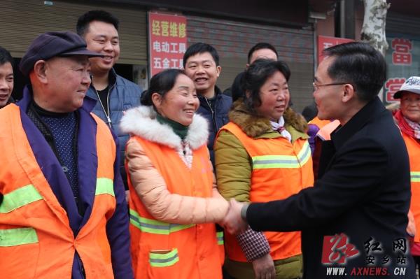 在县卫生环境管理处,张阳与现场数十名环卫工人一一握手,感谢所有环卫工人为维护城市环境整洁作出的重要贡献,希望大家坚守岗位,保证节日期间我县的市容环境干净整洁。