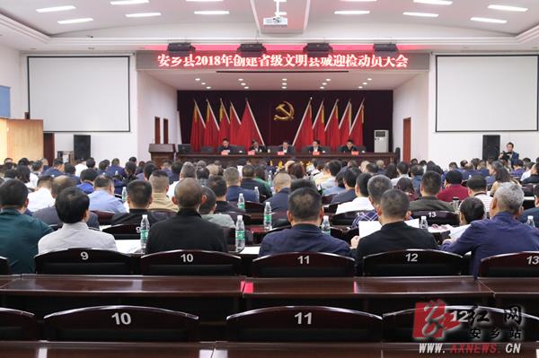 红网时刻10月11日讯(分站记者 廖孙赐)10月11日上午,安乡县召开2018年创建省级文明县城迎检动员大会,全面总结我县创文工作开展情况,现场交办未完成整改问题,研究部署下阶段创建省级文明县城迎检工作。县委书记张阳出席会议并讲话,县委副书记吴兴国主持会议,全体在家县级领导,县直副科级以上单位“一把手”,各乡镇党委书记、分管创文工作负责人等参加会议。