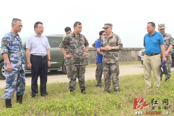 7月24日,省军区副司令员陈博来我县督导检查防汛工作。市委常委、市军分区司令员李兴刚,县委副书记、县长、县防指指挥长陈德,县领导李柏、何苏静陪同督导。