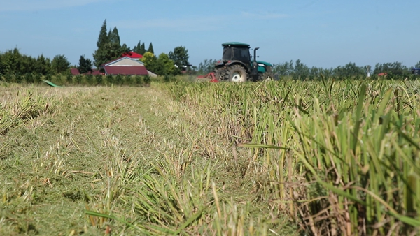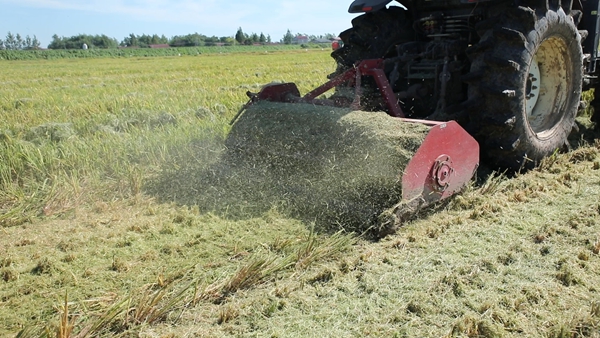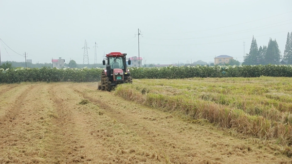 【同期】安乡县龙明蔬菜专业合作社负责人 龙刚:今年我们采取的是“双碎”处理,收割机粉碎稻穗部分,旋耕机处理稻梗部分,这样既有利于下一季作物生长,也避免了焚烧带来的环境污染。