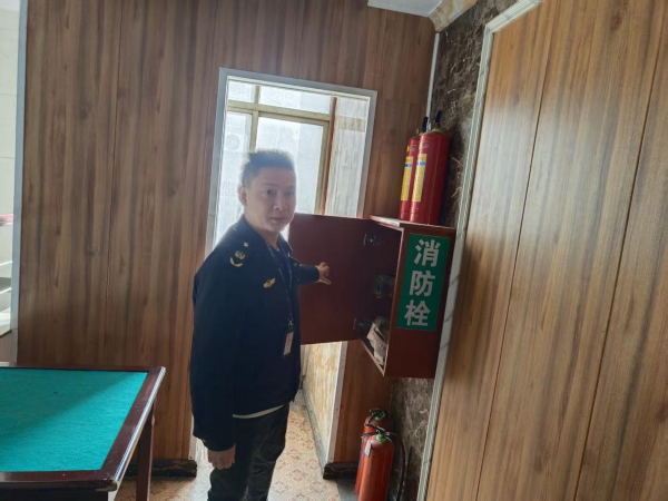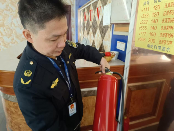 存在问题:安全出口有杂物,灭火器无消防检查卡。