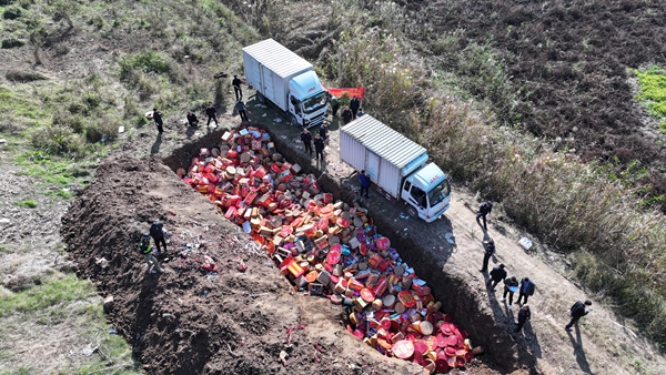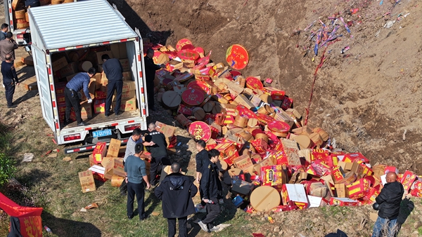 近日,安乡县组织公安、应急管理、市场监管等多部门联合开展烟花爆竹领域“打非治违”专项整治行动,对全县范围内烟花爆竹的运输、储存、销售等环节进行了排查,依法查处并收缴了2550件非法烟花爆竹产品。11月20日,相关部门依法对这批产品进行了集中公开销毁。